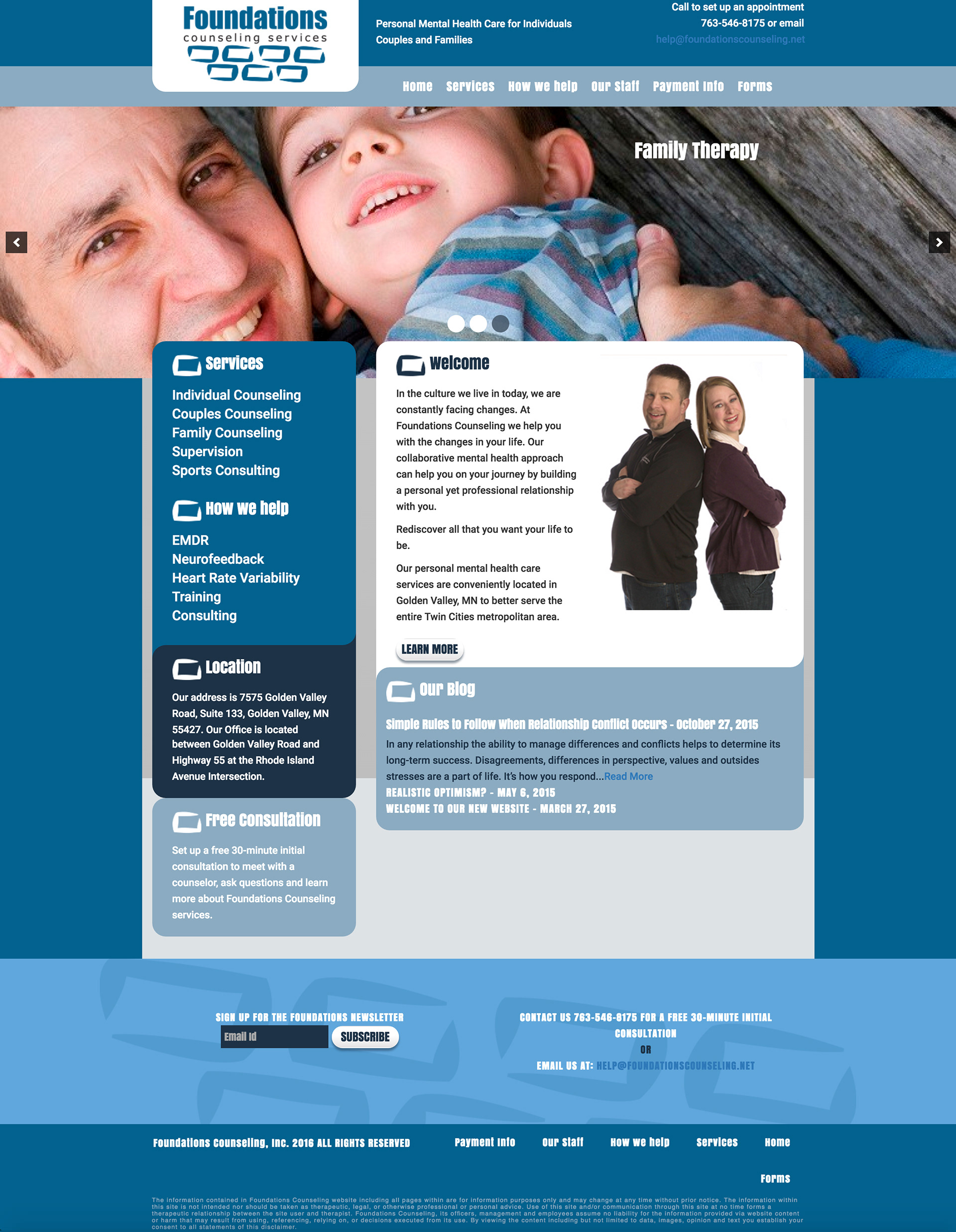 This is website is actually a sister site to The Center for Sports and the Mind. This site is targeted to a different audience and highlights some further core capabilities for this business. foundationscounseling.net