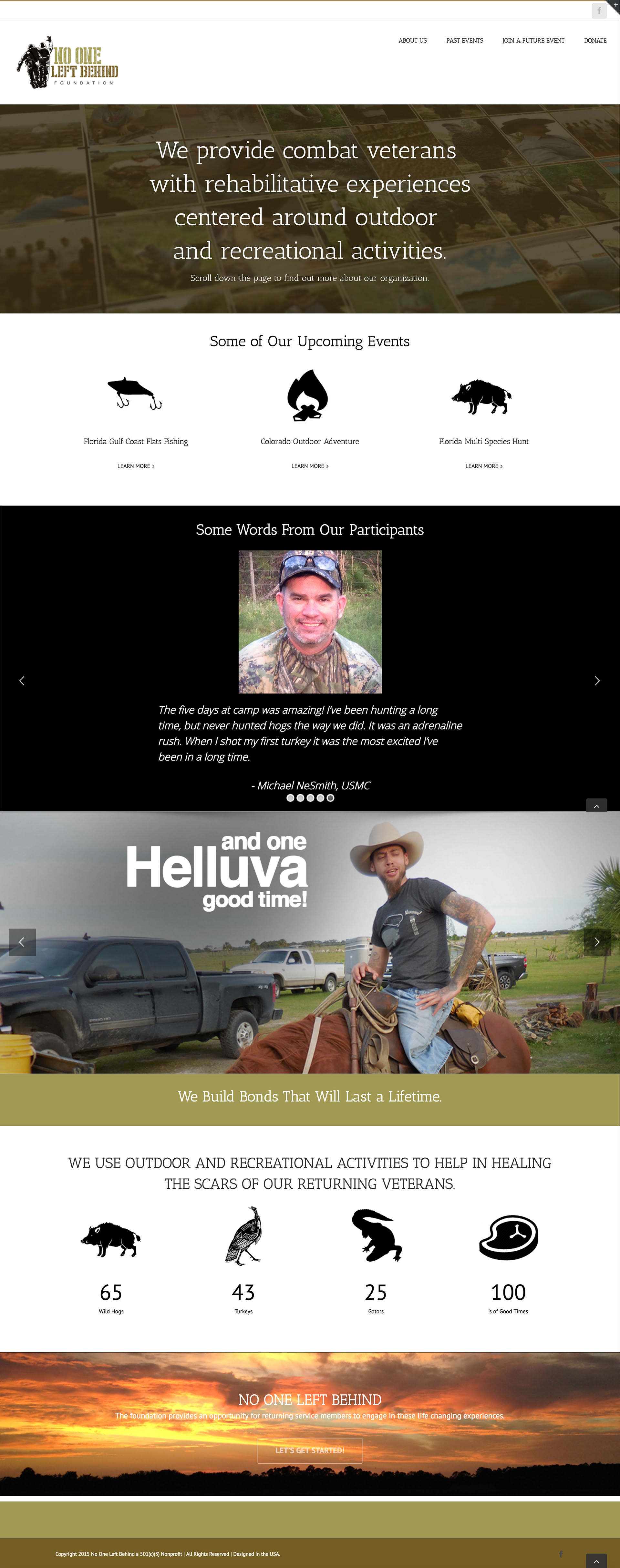 No One Left Behind Foundation is creating experiences for our returning service men and women who are looking for a more reserved way of recovering from their injuries sustained while serving our country. nolb.org
