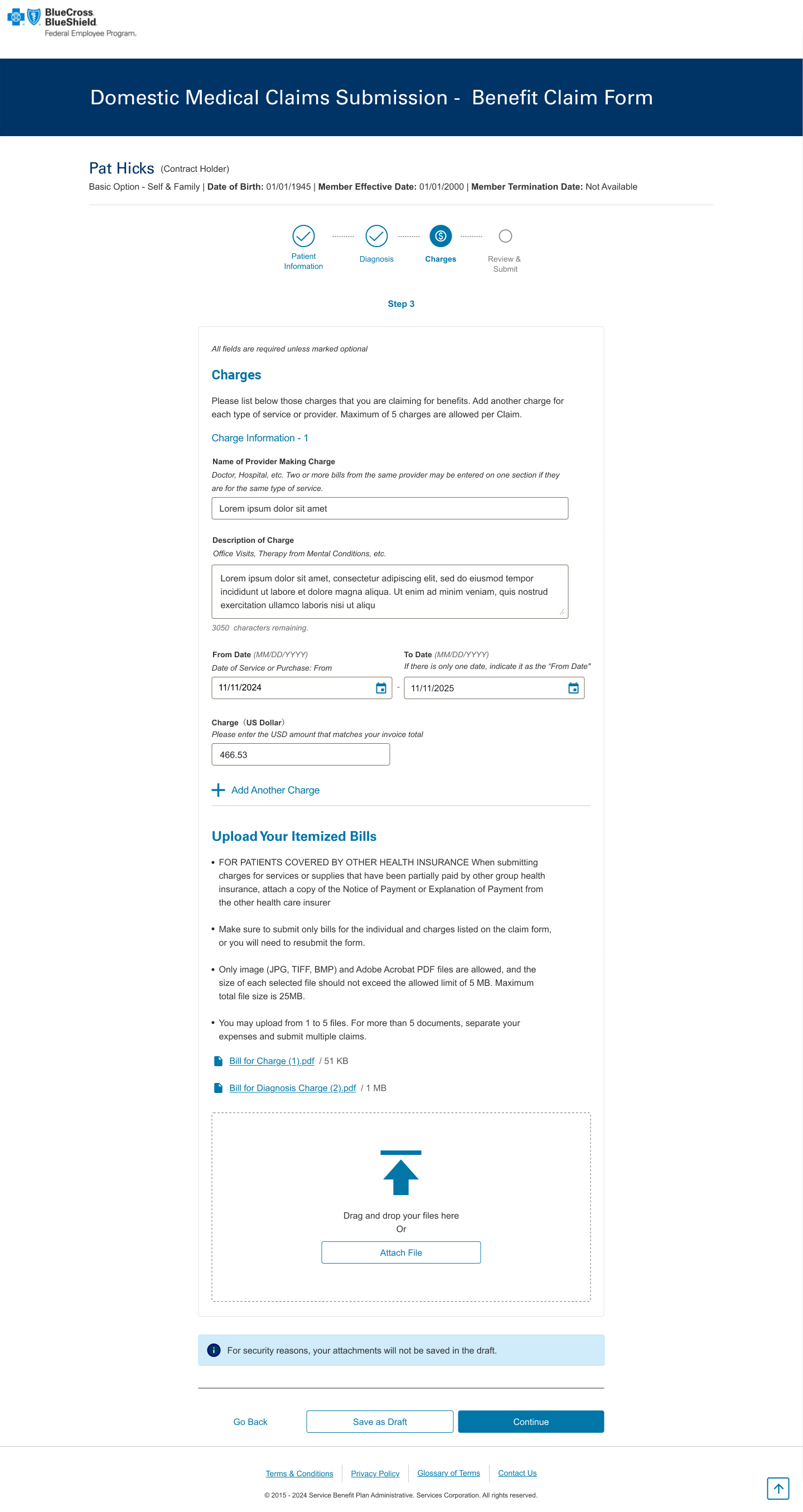 The Product Team engaged me to address a critical pain point for members in the claim submission process. At the time, members were required to download a PDF form, complete it by hand, and mail it back. This outdated process was inconvenient, error-prone, and often delayed claim processing, leading to frustration and accessibility challenges for members.