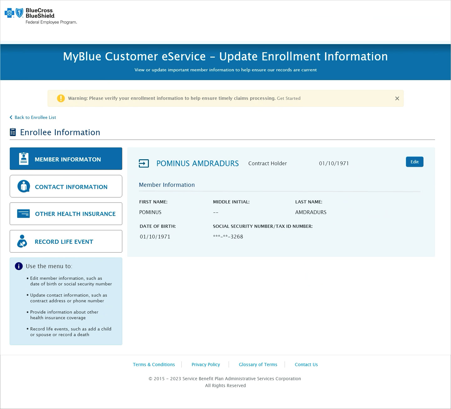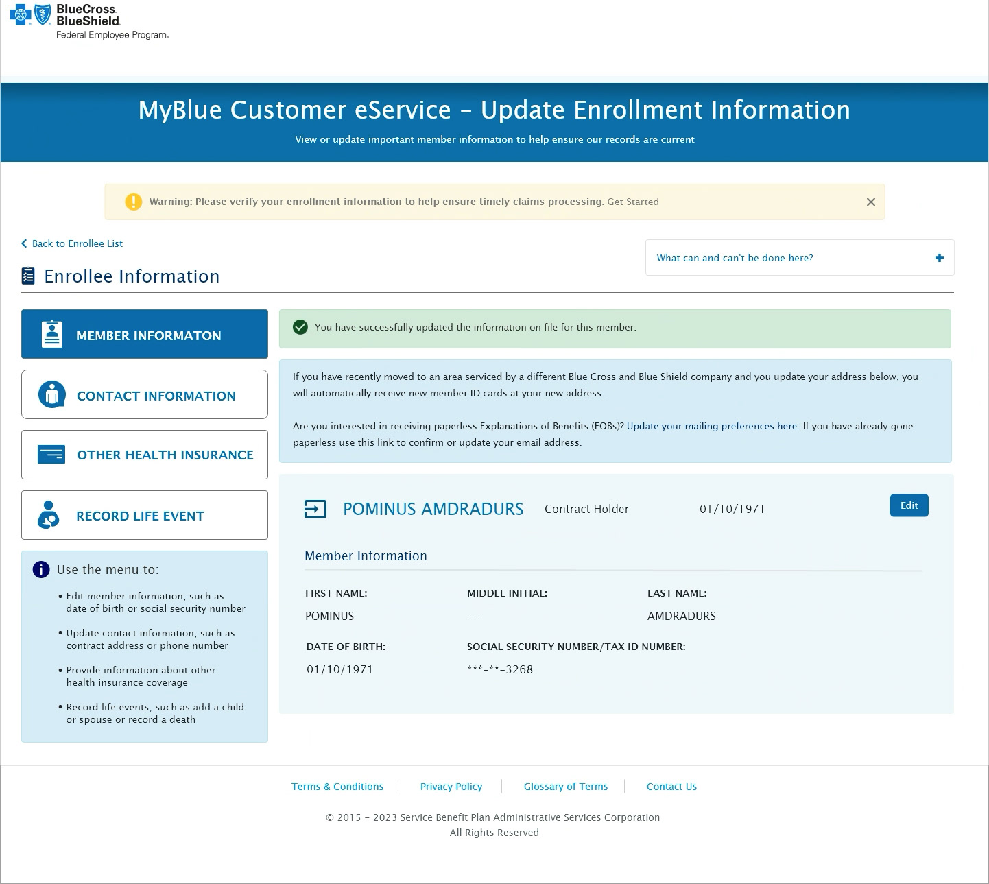 Update Member Enrollment Info